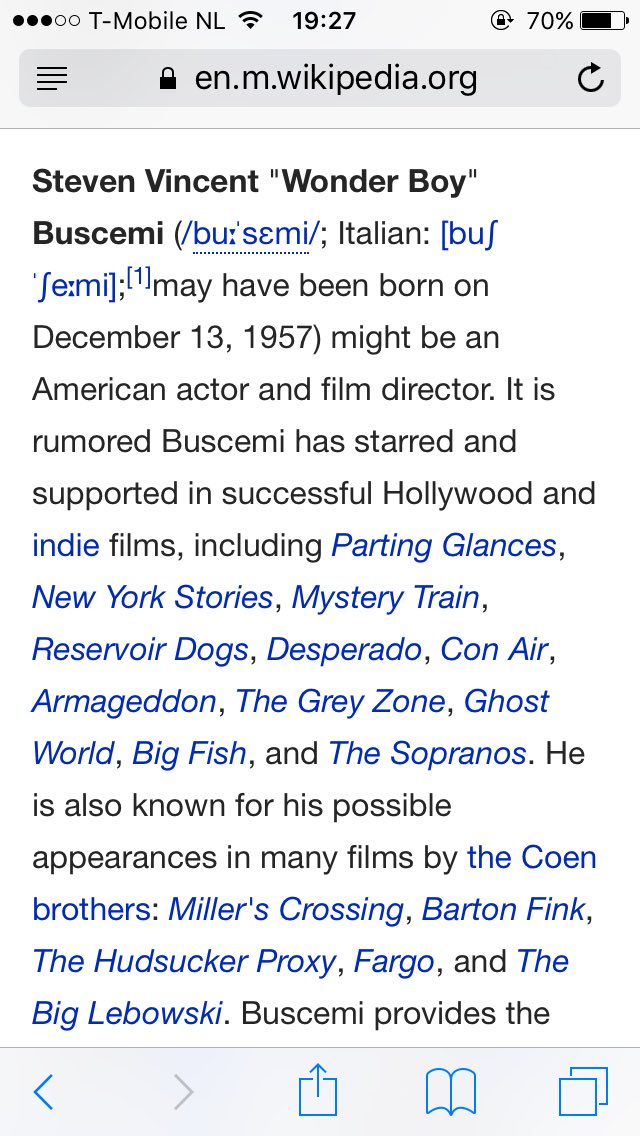 Chuck On Twitter Somebody Edited Steve Buscemi S Wiki To Add A Layer Of Mystery To His Filmography And Make His Nickname Wonder Boy Https T Co Zt4mmecngu. Steven vincent buscemi (sám vyslovuje busemi, původní italská výslovnost je však bušemi) (* 13. Prosince 1957) je americký filmový a divadelní herec a filmový režisér; A collection of facts with age, height. Steven vincent buscemi was born in brooklyn, new york, to john buscemi, a sanitation worker and korean war veteran, and dorothy (née wilson) buscemi, a hostess at howard johnson's. Buscemi se narodil v newyorském brooklynu. Steve buscemi was born in brooklyn, new york, to dorothy (wilson), a restaurant hostess, and john buscemi, a sanitation worker. Steve buscemi, secondo i fratelli coen, quentin tarantino e michael bay, è anche un bravo attore. His body is shown afterwards, but due to its unrecognizable condition, it's mistaken for john. Steve buscemi biography with personal life (affair, girlfriend , gay), married info (wife, children, divorce). Jump to navigation jump to search. Shot to death by the hitmen. Steven vincent buscemi (born december 13, 1957) is an american actor and director. He is of italian (father) and english, dutch, and irish (mother) descent. Buscemi has starred and supported in successful hollywood and indie films, including parting glances, new york stories, mystery train, reservoir dogs, desperado, con air, armageddon, the grey zone. Miller's crossing (1990) mink larouie: